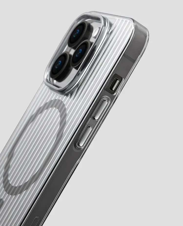 波ストライプ柄で衝撃を分散し、iPhoneをしっかり守る。